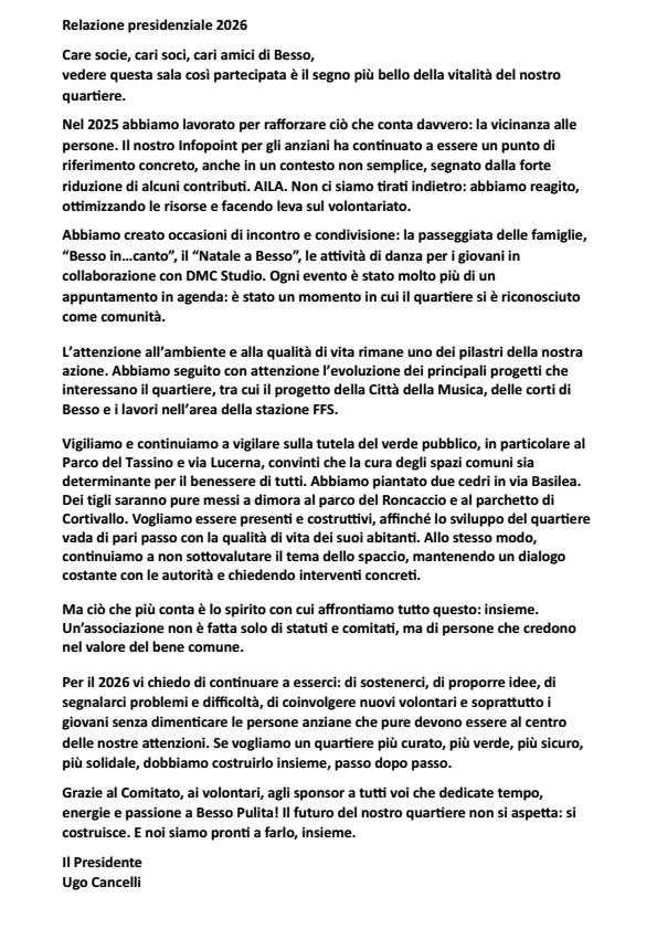 Programma delle attività 2026 dell’Associazione Besso Pulita.