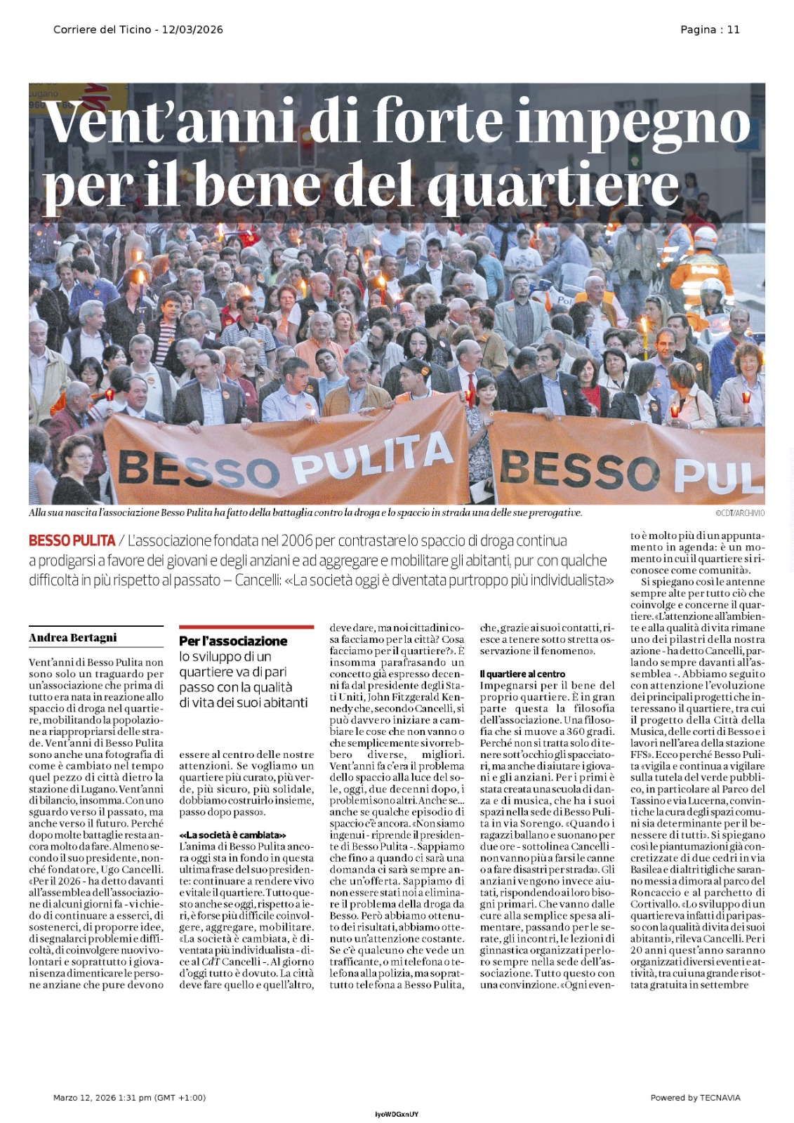HCL e Alessio Bertaggia sostengono Besso Pulita!