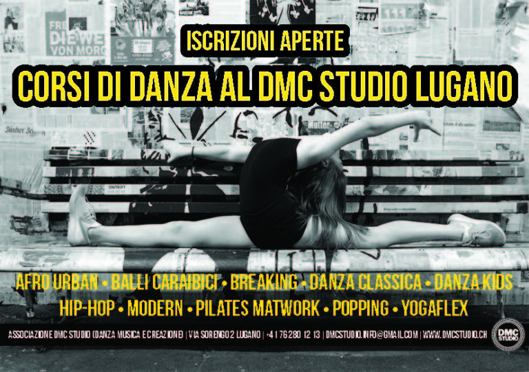 Nato nel 2012, il DMC STUDIO opera come Associazione senza scopo di lucro dal 2014 e si prefigge come obiettivo principale di promuovere attività ludiche e sportive per il mantenimento del benessere psico-fisico. Con il suo team d’insegnanti, qualificati nelle discipline proposte e in costante aggiornamento, desidera risvegliare l’entusiasmo per uno sport regolare e sano, insegnando ai giovani in particolare, a trarre beneficio dalla loro spontaneità, creatività e dalle emozioni. L’Associazione vuole anche dare l’occasione ai genitori di poter condividere con i figli l’attività scelta organizzando eventi per le famiglie e proponendo corsi specifici genitore-bambino.Le proposte si focalizzano sulla danza, pensata in modo universale e per tutti: richiede capacità a livello di coordinazione, espressione e creatività. L’esperienza di gruppo nel mondo della danza è una vera e propria “palestra di vita”: si impara a stare bene e a crescere insieme, ad incoraggiarsi e a sostenersi. Il DMC STUDIO ha a cuore che bambini e giovani possano vivere lo sport in modo sano e nel rispetto di ognuno, coinvolgendoli nella realizzazione delle attività.Il DMC STUDIO collabora con l’Associazione Besso Pulita!, attiva nel Quartiere di Besso da oltre 10 anni, nella promozione dello sport per i giovani e giovanissimi e nell’organizzazione di eventi volti alla socializzazione. Propone nella sede di via Sorengo 2, a Lugano-Besso, anche dei corsi “Wellness” pensati appositamente per gli adulti che vogliono dedicarsi un vero e proprio momento “toccasana” durante la giornata.